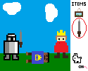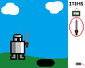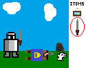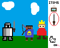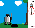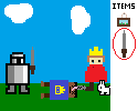 You decide to leave your keep, exiting into the beauty of your dukedom. But it seems that two things have not gone your way. For one, it seems that a knight has jumped on a tree and making a fool of himself. You can't have anyone from the capital seeing this! And for two, it seems that CBA has jumped into your inventory, leaving you with only 2 item slots left.