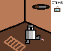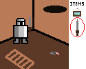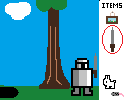*Sigh* You leave your house, ending your era of hemititude, and you go outside, the rays of light burning your skin. Outside of the house, you see a few things. A great large tree which you can't see, and a hole. It also seems that Dennis has jumped into your inventory only leaving you with only two spaces left. That selfish brat.